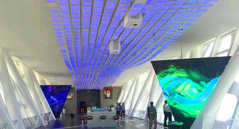 DGX研制的小間距具有高刷新、高灰階、高亮度利用率、無殘影、底功耗的特點,室內應用不反光,且顯示屏對比度高達5000:1;其輕便超薄、精度高,占用運輸及使用空間小、靜音且高效散熱。畫面細膩,直通電視機的播放效果。