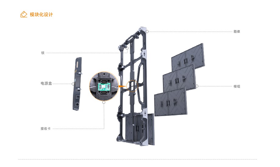 屏體各大部件采用模塊化設計,使用更加安全,可熱拔插,維護更加簡單;